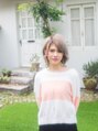 全体をブリーチしてオレンジ色を抑えてからグレージュをオンカラー!外国人のような透明感のある柔らかい質感を表現しました☆短めレングスだから綺麗に決まる!ハイトーンアッシュグレージュ。前上りの顎ラインボブはハネ感をつけて動きをつけました