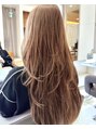 柔らかいベージュカラーにレイヤーを合わせた、透明感と動きのあるスタイル。重さを残しつつ空気感が出るようにカットすることで、巻いてもストレートでも立体感のある仕上がりに。肌なじみも良く、上品で垢抜けた印象を叶えます。