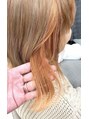 白髪ぼかし伸びても白髪が目立ちにくく、忙しい朝でも扱いやすいように仕上げています。今回のカラーは全体にブリーチをしてオレンジのイヤリングカラー入れております。ブリーチカラーやアクセントカラーはお任せください!