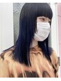 根元はあえて地毛を残し、中間毛先をケアブリーチ後、ブルーブラックのグラデーションに。思い切った色味でもこなれ感が出るので、挑戦しやすいカラーです!
