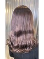 小顔セミウェットウェーブピンクベージュハイライトカラー