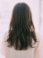暗髪ナチュラルロングスタイル☆透け感のある前髪に前上がりのラインのバックスタイルです。耳下からゆるい感じのウェーブになるように32ミリのコテで巻いてニュアンスを出す感じに!暗めのカラーなので毛先に動きを少し出すだけでだいぶ印象も変わります!