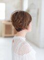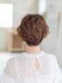 ウエービーなカールとショートスタイルで可愛らしくフェミニンな雰囲気のでるスタイルです。フォルムを崩さない程度のカールで頭の形を綺麗に見せてくれます。襟足はタイトに収まるようにすっきりと揃え、丸みのあるシルエットに作っています。【船橋】