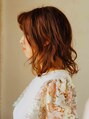 鎖骨くらいの長さでトップにレイヤーの入れたスタイル。カラーは一度明るい状態から、8トーンくらいの落ち着いたオレンジブラウンに染めました。一度明るいところに色を入れてるので、光に当たった時の透明感も大切。[船橋/船橋駅]