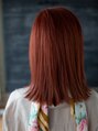 方にあたる長さの切りっぱなしワンレングススタイルです。カラーは濃いめの暖色カラーでしっかりと発色させています。ノーバングでストレートタッチのスタイルではクールな印象になりやすいのでカラーリングでバランスをとるのがおすすめ![船橋/船橋駅]