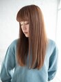 ナチュラルなストレートスタイル!毛先が重めのカットをロングスタイルですることで、よりストレートな印象が際立ちます。バングも重く設定すると全体的にボテっとしてしまうので量感を整えます。カラーは明るく設定することで顔周りを明るくしてくれます。
