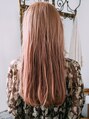 レイヤーなどは入れずに量感を調節して、切りっぱなし風にカットしています。量感を調節する事でロングヘアでも重く見えないようなヘアスタイルを作る事ができます。カラーはほんのりピンクで色落ちする際に、綺麗になるように仕上げています。【船橋駅】