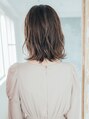 ミディアムスタイルです。毛先を少し軽めにカットすることで動きの出やすいスタイルになってます。カラーは透明感のでるように暗すぎないカラーになっているので全体的に大人っぽい印象になります。ふわっと動きが出るように26っmでまいてます。【船橋駅】