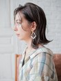 甘過ぎない大人っぽい外はねのミディアムスタイルです。全体的に切りっぱなしボブにカットし、表面にレイヤーを入れくびれができるスタイルに。バングは頬骨のあたりで流しやすいようにカットし大人っぽい印象に。【船橋駅】