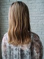 外国人風ハイトーンミディアムスタイル。顔まわりにレイヤーが入っているのでセンターパートに分け流すように巻くことでクールな印象に。根元に暗い部分を残し立体感を出すことによて動きを出し重過ぎない軽い印象に。【船橋駅】