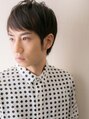前髪に長さのある少し甘さをだしたショートスタイル。トップは短くなっているので,ボリュームや軽さがでます。ワックスで束感ショートにしたり,分け目を七三につけてトラッド風にセットしたり好感度もあるショート。クセ毛風にニュアンスパーマも◎(草加)