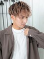 サイドとバックに刈り上げたマッシュスタイル。トップを長く残してゆるいツイストスパイラルパーマで軽さと柔らかさを備えたワイルドセクシーなフォルムに。