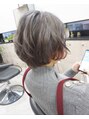 ショートボブ×ライトグレー×イヤリングカラーオレンジ