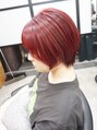 ショートボブ/ブリーチなしカラーバターレッド