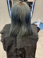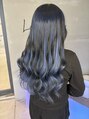 ブリーチベースからブルーに!ブルーは色落ちが早いのでベースはしっかりと色を入れます!エクステはダイヤモンド!トータル100本で表面にローライトでブラックに!