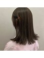 透明感たっぷりのピスタチオカラー◎オリーブ系やグレー系がお好きな方におすすめです^^カットは切りっぱなしで重めスタイルですがカラーで柔らかく、今からの季節にぴったりです◎