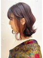 インナーレッド暖色系カラーの切りっぱなしボブ