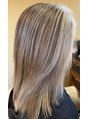 根元ブリーチでリタッチ、薄いミルクティーベージュと、薄いブラウンを縦に塗り分けました。なんと、かきあげるとメッシュのようになります!塗り分けのときに時間をいただきます。お電話かコメントください。