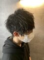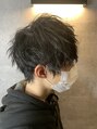毛先をランダムに遊びせたスパイキーショートです。カットで毛先が動くように調整した後、パーマでゆるめのツイストスパイラルをかけます。毛先の動きがランダムになりスタイリングした時に無造作な動きを演出し、格好良さを引き立ててくれるヘアスタイルです