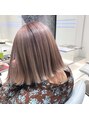 ダブルカラー(1ブリーチ)で作るピンクベージュ。今回ブリーチはリタッチのみ。切りっぱなしボブと相性ぴったりです(^^)ほんのり根元を濃いめに仕上げるのもちょっとした陰影が可愛いです。※ブリーチ回数は状態を見て応相談です【レイズ】[立川]