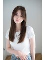 斜めバンググレージュカラーシルキーベージュロングヘア