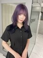 ハイトーンラベンダーに毛先はネイビーブルー♪レイヤーカットで巻きやすく☆