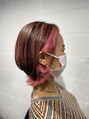 こちらはインナーカラーとハイライトにライトピンクを入れたスタイルになります!フェイスフレーミングも入れてトレンドにも乗ったカラーデザインになっております!カットはウルフベースにする事でインナーカラーが目立つように髪を配置しております!