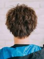 ワイルドセクシーな印象のショート。サイドとえりあしはタイト目にすっきりとカットしてから、ツイストパーマで無造作な動きをプラス。表面はしっかりかけつつも、まびきながら巻いていくのが広がりすぎないポイントです!