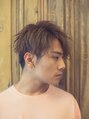 メンズミディアムショートスタイル! トップ長めの2ブロックのスタイルに毛先の動きをだしてカッコ良くクールにしたスタイル! 毛先に少しツイストっぽい動きを出す事によって普通の束感よりもより男 らしさがプラスされます!