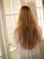 ハイトーンカラーのくせ毛風ロング。ブリーチ後にミルクティーアッシュをオンカラー。色味をおさえた透明感のあるカラーに仕上げています。毛先はコテでゆる巻きにして外国人風な柔らかいくせ毛感を出しています。
