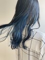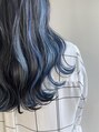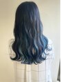 根元はブルーブラックで中間から毛先にかけてアイスブルーのインナーカラーを施したおすすめカラーです☆内側に入れられた透明感のあるブルーがより立体感のあるスタイルに☆ウェーブで巻くことで柔らかい雰囲気の外国人風カラー【el CERCA高田馬場/新宿】