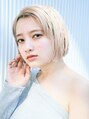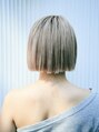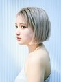 ホワイト系のベージュカラーで更に透明感のあるミニボブスタイル。切りっぱなしでカットラインを強調し、クールな印象に仕上げました。