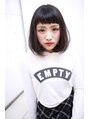 毛先にワンカールをつけた、大人かわいい、ナチュラルミディストレートスタイルです。全体的にまとまりがあり、普段のお手入れも簡単にできます。重めバングで、目上ぎりぎりの長さでカットし、斜めに流すことで、目力アップと小顔効果もあります♪