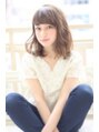 大人グラムな雰囲気でセクシーでクールな大人女子に☆外人風な大きめに出したほつれウェーブと、長めに残した厚めバングでセンターパート気味にし、骨格補正、小顔効果もあります。