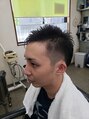 左側はスッキリ上まで刈り上げてますが、右サイドとバックはツーブロックになってます。トップは大目にスキを入れ、自在に動かしやすくしてます。