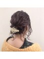 ボブスタイルのヘアセットです。細かく出したおくれ毛でルーズ感を出しで、襟足はしっかりまとめました。ボブでも柔らかくアップスタイルにしたい時におススメです!