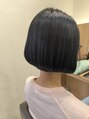 全体的に短いワンレンボブスタイルです。 髪はストレートで、滑らかな質感です。 毛先は切りっぱなしで重ために! 内巻きにスタイリングします、首元に沿うようなシルエットに!