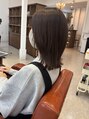 くすみブラウンの柔らかな発色が、冬カラーらしい落ち着いた雰囲気をつくるスタイル。伸ばし中でも扱いやすく、自然な動きが出るフェイスレイヤーで抜け感をプラス。大人っぽさと可愛さを両立できる、季節にぴったりのミディアムヘアです。