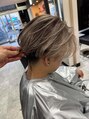 men's/フェザーショート 刈り上げセンターパート ホワイトブロンド エンドカラー 波打ちパーマ