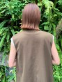 ナチュラルな質感の切りっぱなしボブ。ナチュラルテイストの中にもぷっつりとしたラインでオシャレ感のあるスタイルです。肩についてはねるスタイルは挑戦しやすいので是非お任せください◯