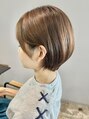 ボーイッシュになりすぎないフェミニンなショートです(^^)顔まわりは長めに残し、耳にかけるとさらに可愛い雰囲気になります♪