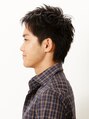 直毛、剛毛といわれるような髪質だがトップにボリュームが出せずサイドの膨らみがどうしても抑えられないシルエット。サイドは耳を出して膨らみを抑えるよう短くカット。