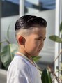 周りはフエードカットで短く、トップは遊びが利くように長めに残してます。セットしないときはそのままおろしてマッシュ系に出来ますし、セットで決めればバーバースタイルの完成!ハイ難度のオシャレスタイル☆