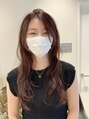 長めの前髪でシースルーバング。ショコラピンクカラーで秋を先取り。ロングレイヤーカットで顔周りの軽さと抜け感をだしました。伸ばし中の方にもおすすめのヘアスタイルです。