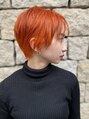 ハンサムショートを、ダブルカラーして暖色系カラーのオレンジに!カラーで軽さや質感や雰囲気をガラリと変えることができます。ウエット質感がいつものショートに差をつけるアクセントに!伸ばしかけのバングもパラパラに束感出してよりオシャレに。