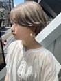 大人かわいい前下がりのマッシュショートはシャープに切ったライン、襟足をしめてスッキリ見せたりと、メリハリを効かせて絶妙なバランスに!カラーはブリーチ後に ヘーゼルベージュで透明感、質感をプラスして大人見えに!イメチェン楽しみませんか?