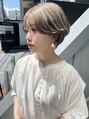 大人かわいい前下がりのマッシュショートはシャープに切ったライン、襟足をしめてスッキリ見せたりと、メリハリを効かせて絶妙なバランスに!カラーはブリーチ後に ヘーゼルベージュで透明感、質感をプラスして大人見えに!イメチェン楽しみませんか?