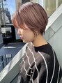 大人かわいい前下がりのショートボブはシャープに切ったライン、襟足をしめてスッキリ見せたりと、メリハリを効かせて絶妙なバランスに!カラーはブリーチ後くすみ感のあるピンク、レッド系ベージュでつや感、質感をプラスして大人見えに!