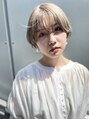 大人かわいい前下がりのマッシュショートはシャープに切ったライン、襟足をしめてスッキリ見せたりと、メリハリを効かせて絶妙なバランスに!カラーはブリーチ後にホワイティアッシュで透明感、質感をプラスして大人見えに!イメチェン楽しみませんか?