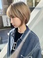 大人かわいい前下がりのショートボブはシャープに切ったライン、襟足をしめてスッキリ見せたりと、メリハリを効かせて絶妙なバランスに!カラーはブリーチ後くすみ感のあるミルクティーブラウン,スモーキーベージュでつや感、質感をプラスして大人見えに!